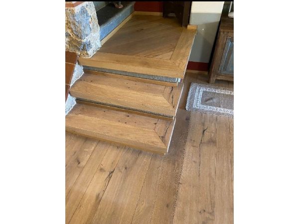 La nostra ditta si occupa anche di realizzazione di parqet; in questo caso è un parquet rustico con il quale sono stati realizzati anche scalini e pianerottolo.