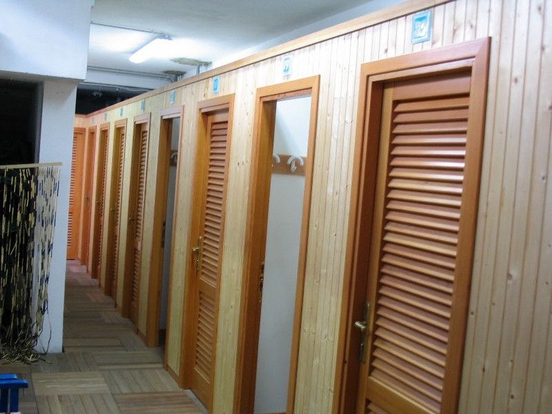 cabine in legno costruite in un seminterrato per ottimizzare tutti gli spazi